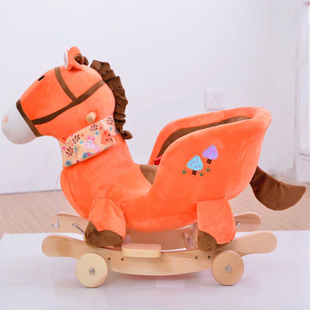 Exceptionnellement confortable grâce à sa texture douce, ce cheval à bascule en bois est également sécurisé par sa sangle et offre une option supplémentaire avec des roulettes.