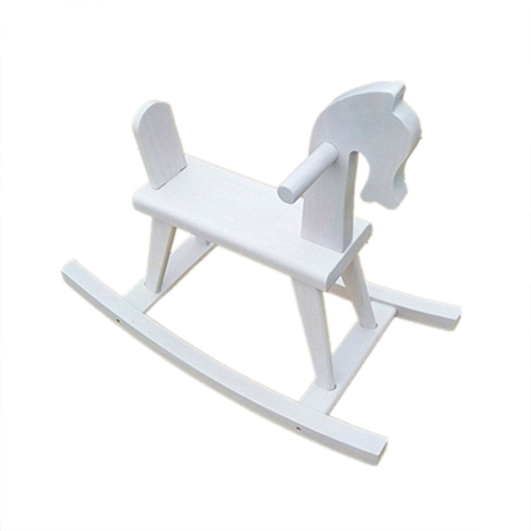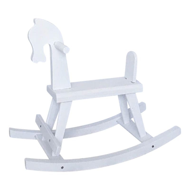 Ce cheval à bascule en bois blanc, alliant une peinture immaculée et une forme classique, est l’équilibre parfait entre tradition et modernité.
