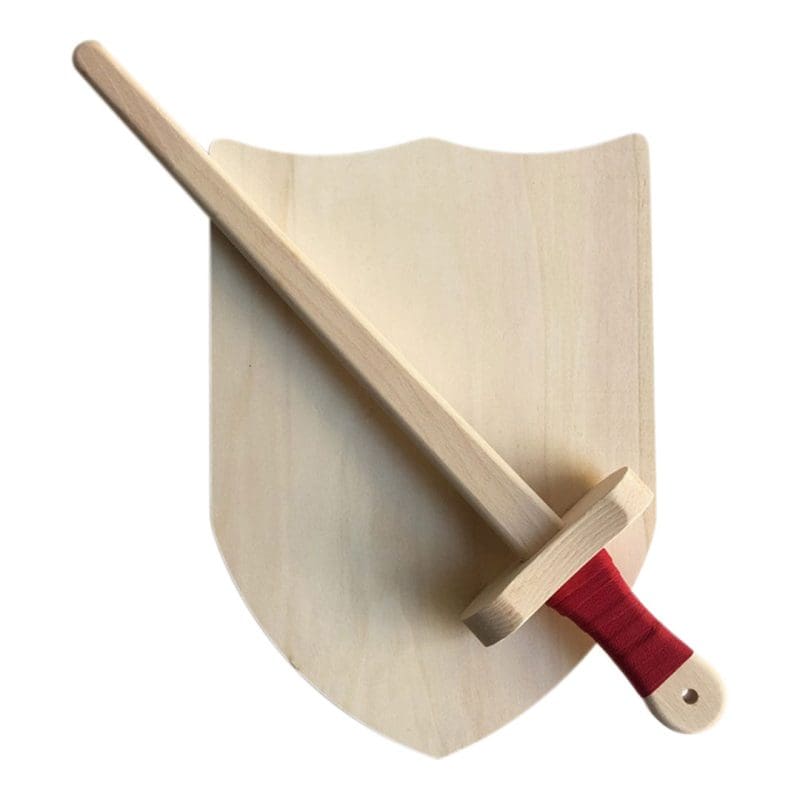 Cette épée en bois et ce bouclier sont des jouets durables qui raviront tout enfant souhaitant devenir un véritable chevalier.