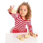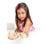 Au final, chaque part de gâteau est reliée par un scratch permettant de former un tout, et la pelle à tarte incluse permettra aux enfants de découper et servir les différentes parts.