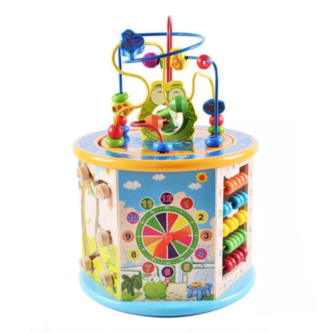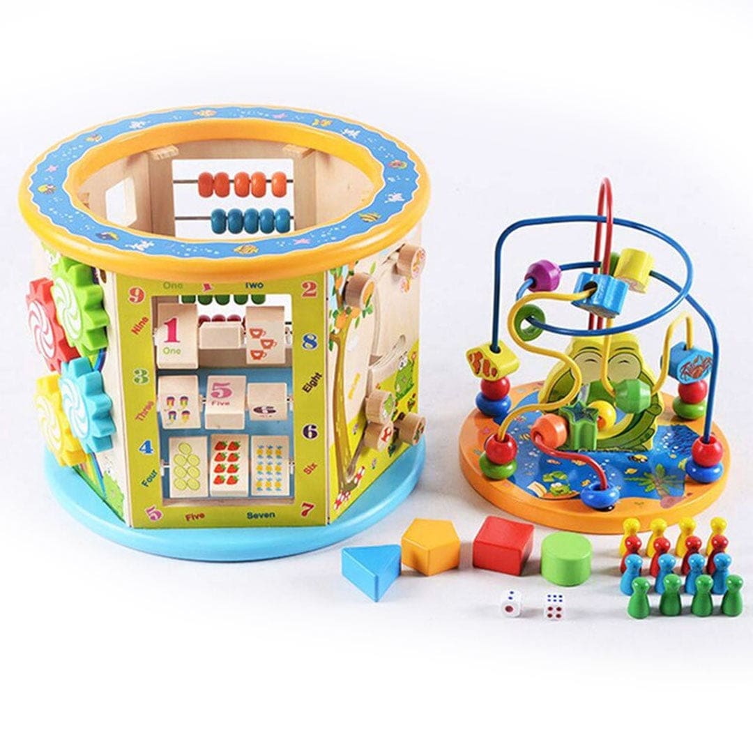 Ce boulier en bois multifonction comprend divers jeux éducatifs, idéal pour un apprentissage ludique.