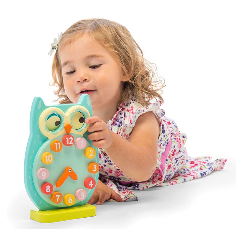 Les deux aiguilles se manipulent avec aisance, et ce jouet a pour objectif de rendre l’apprentissage de l’heure plus ludique et moins formel. En utilisant un personnage jouet, l’acquisition de compétences incontournables comme la lecture de l’heure se transforme en une activité conviviale et plaisante. De plus, vous pouvez même faire un clin d’œil au hibou lorsque votre enfant réussit un exercice ou trouve l’heure exacte affichée par le hibou !