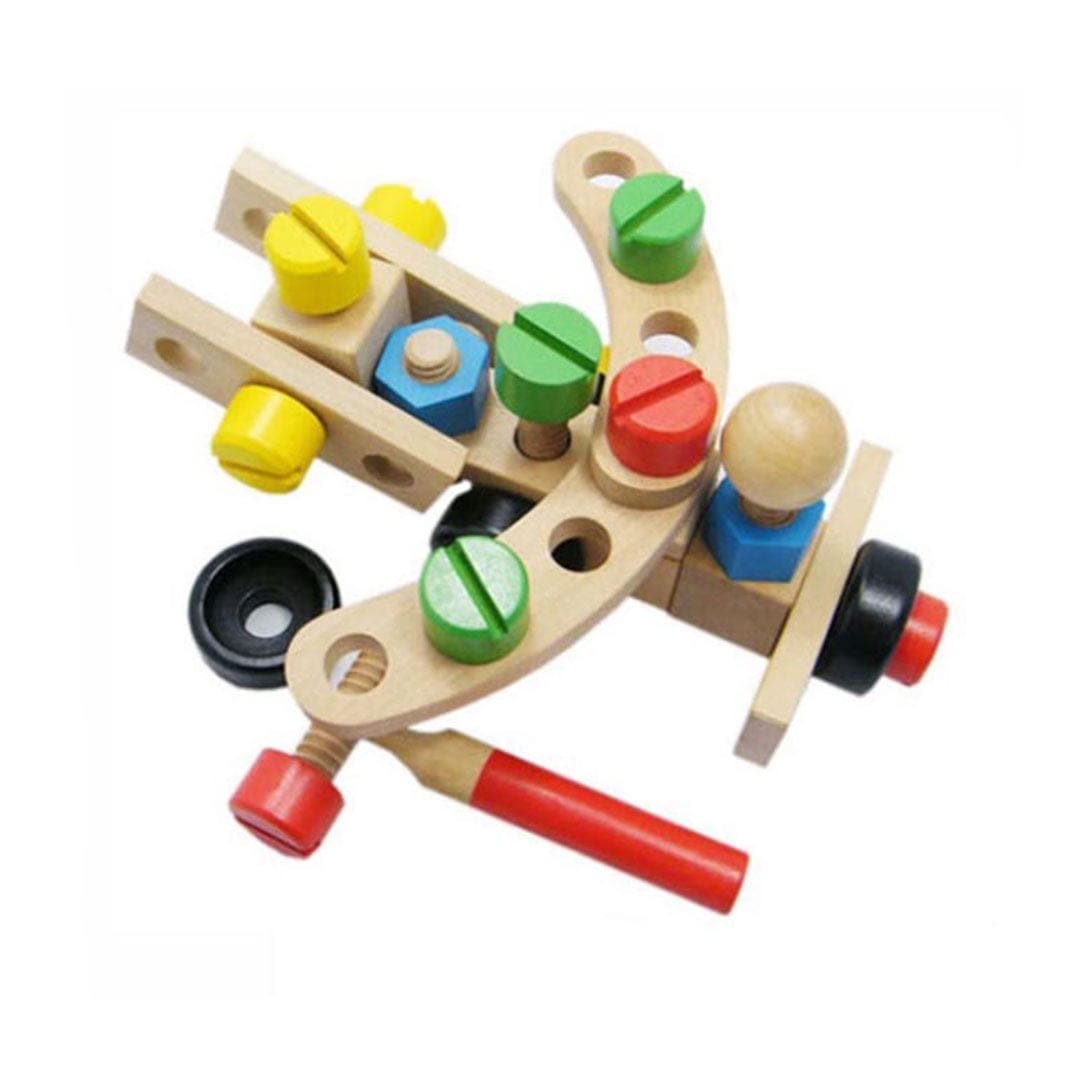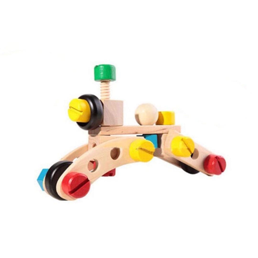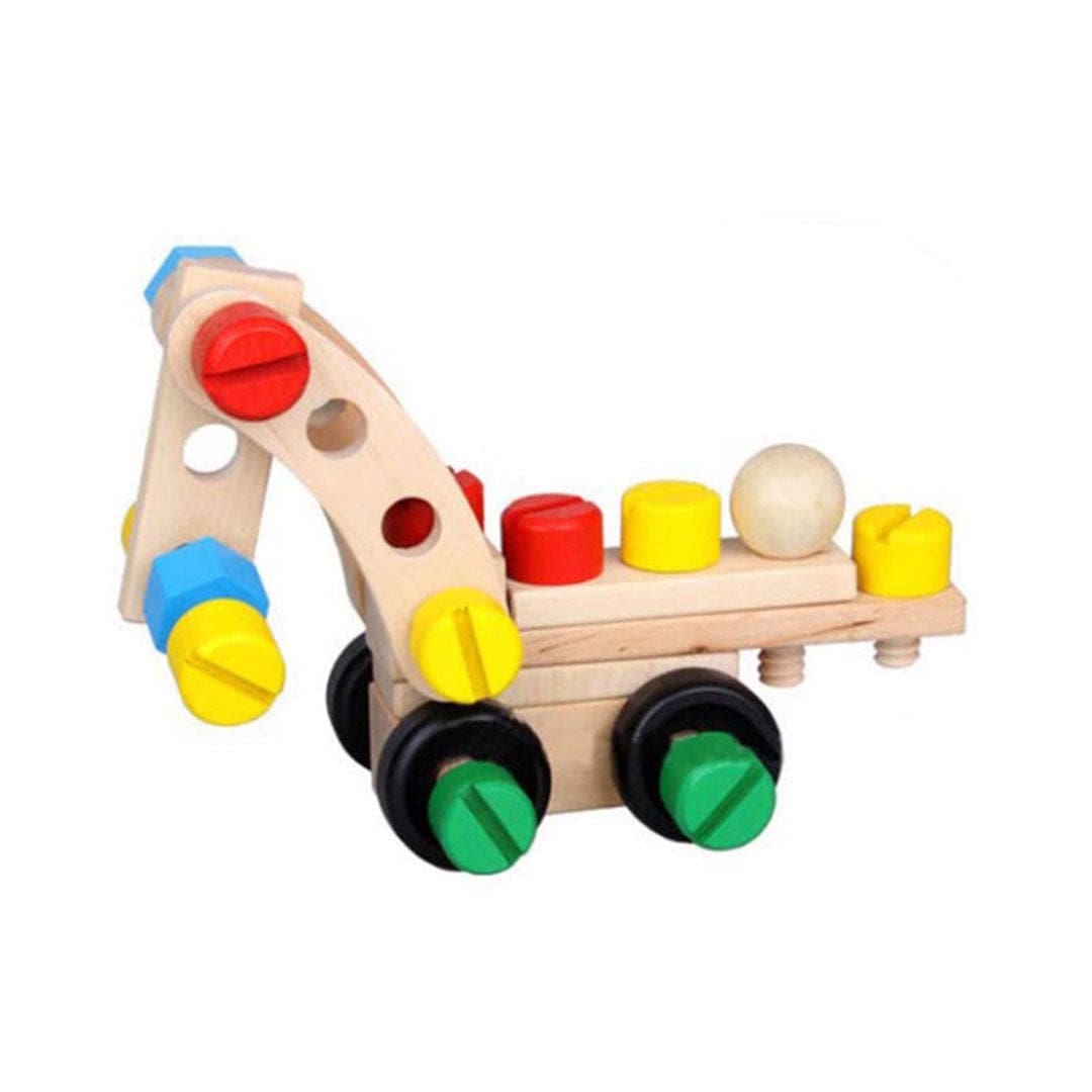 Grâce à ses multiples pièces interchangeables, ce jeu de construction en bois pour enfants de 5 ans permet de réaliser diverses créations, comme un tricycle ou une grue.
