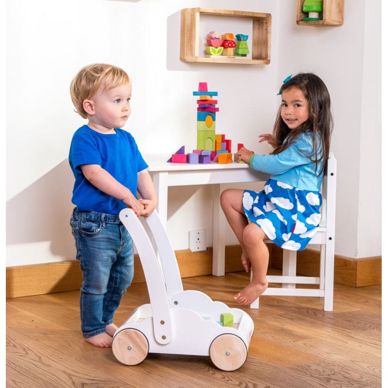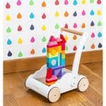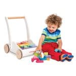 En plus, ce trotteur lui-même est un jouet ludique qui facilite le déplacement des pièces de construction d’une pièce à l’autre. Les enfants pourront ainsi, au grand plaisir des parents, répandre leurs magnifiques créations dans toute la maison.