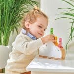 Vous pouvez également opter pour ce jouet d’encastrement sensoriel en bois, qui comme ce nuage, stimulera le sens du toucher de l’enfant et son ouïe grâce aux composants présents dans les pièces.
