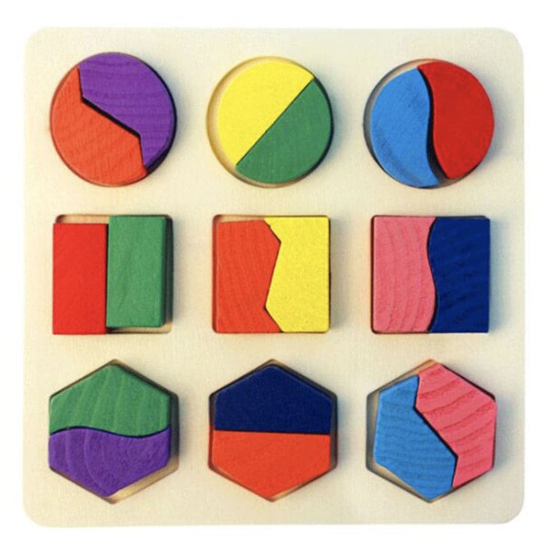 Ce puzzle en bois avec ses formes géométriques variées et ses couleurs éclatantes est parfait pour aider un enfant à affiner sa motricité fine.