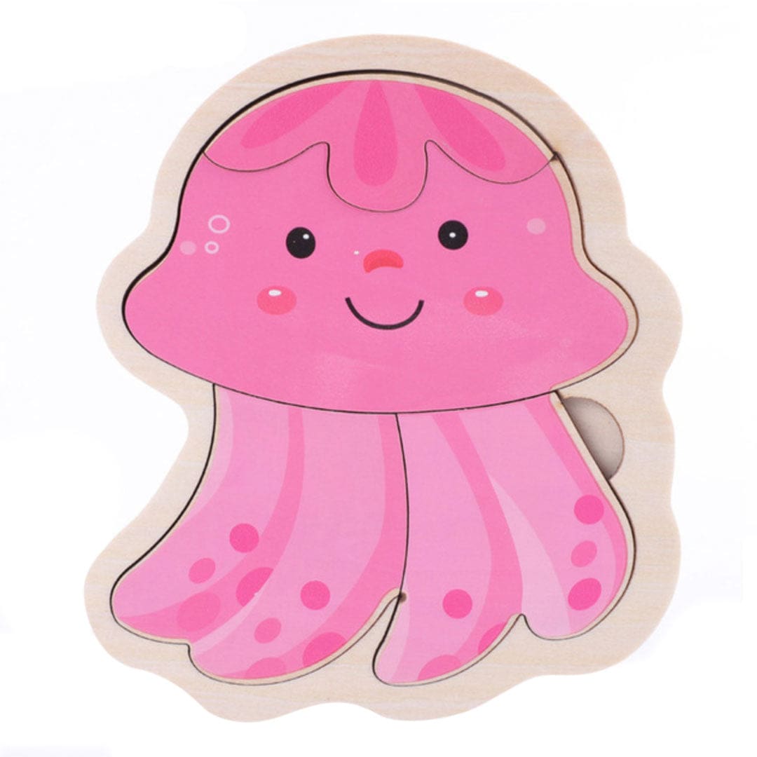 Son visage joyeux et ses yeux enfantins font de cette méduse un animal curieux, qui éveillera la curiosité des jeunes avec sa texture glissante et ses longues tentacules. Il est rare de croiser cet animal quand on est enfant, donc ce puzzle est un excellent moyen de le leur faire découvrir.