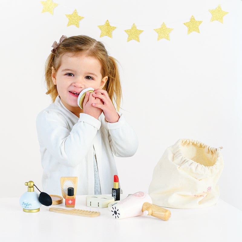 Quand on est enfant, on adore imiter les adultes en jouant à faire comme eux. C’est pourquoi on s’intéresse à la cuisine et on imite sa maman en essayant ses vêtements ou en se maquillant. Malheureusement, le manque de pratique donne souvent des résultats peu convaincants avec du rouge à lèvres partout sur le visage. Cet ensemble est donc parfait pour s’entraîner en toute sécurité et prendre le temps de se familiariser avec les différents accessoires de beauté. Ce sac rempli d’accessoires ravira sans aucun doute une petite fille, c’est à vous de choisir laquelle !