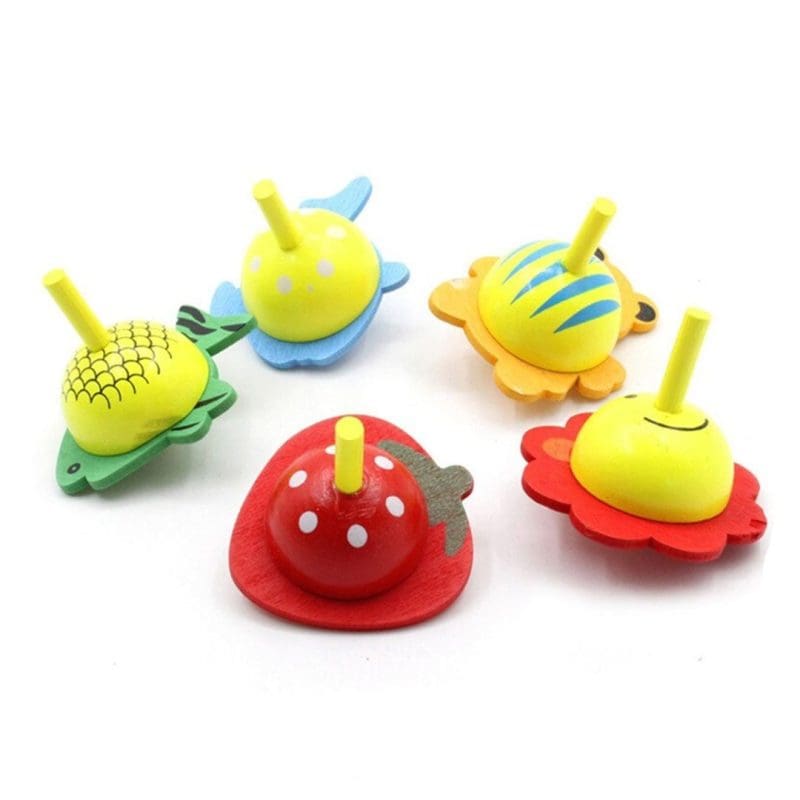 Recevez l’une de ces cinq toupies en bois pour bébé aléatoirement, chacune étant conçue pour être amusante pour l’enfant.