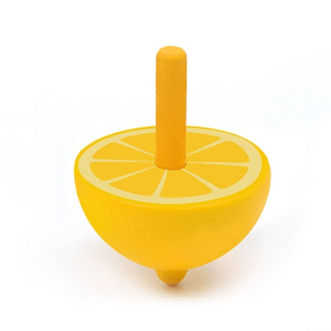 Pour encourager l’aptitude chez un enfant, il est essentiel de lui proposer des jouets de maintien comme cette toupie en bois citron.