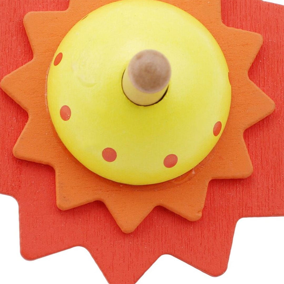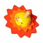 Profitez-en seul ou en groupe avec cette toupie en bois orange, inspirée par notre Soleil, et essayez de la faire tourner sur elle-même le plus longtemps possible.