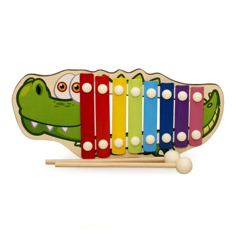 Ce xylophone en bois en forme de crocodile est conçu pour encourager les tout-petits à faire leurs premiers pas dans la musique.